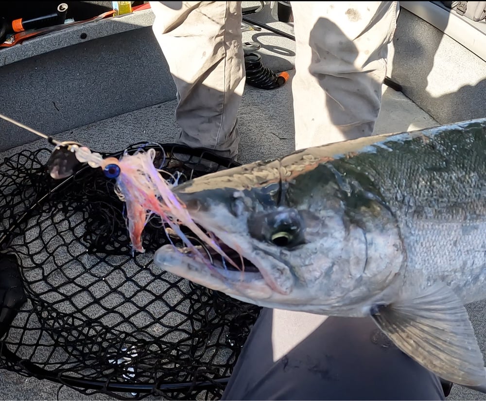 These AK style Spinners are killing it this year! We put them through the test on PNW waters and they worked when nothing else was hitting. The materials make a natural movement that can't be resisted! I personally tie these up on the Fly vise per order, custom colors available upon request. Made on 40Lb mono with 3/0 Gamakatsu Big River hooks! Comes with Easy Clip Clevis for changing out blade colors. Want a particular hook? Just let us know and I'll work with you. Want a different Lb leader? Let us know.