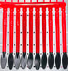 Translucent body bright red with black flake, black tail. Only available here at SNS Designed for Winter Steelhead, simply cut down for summers. 9.6mm at widest point, tail is 13mm at widest point. 5” long. Also have in regular size (8mm w/10mm tail). Each pack comes with 5 worms. These are custom made 1 of a kind molds